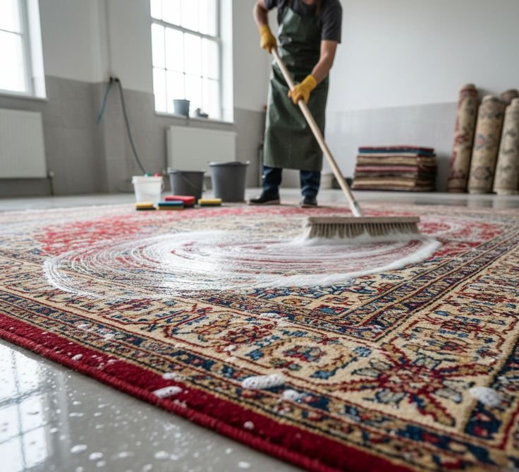 Limpeza profunda que remove sujeiras e ácaros, renovando a aparência e o conforto dos tapetes.